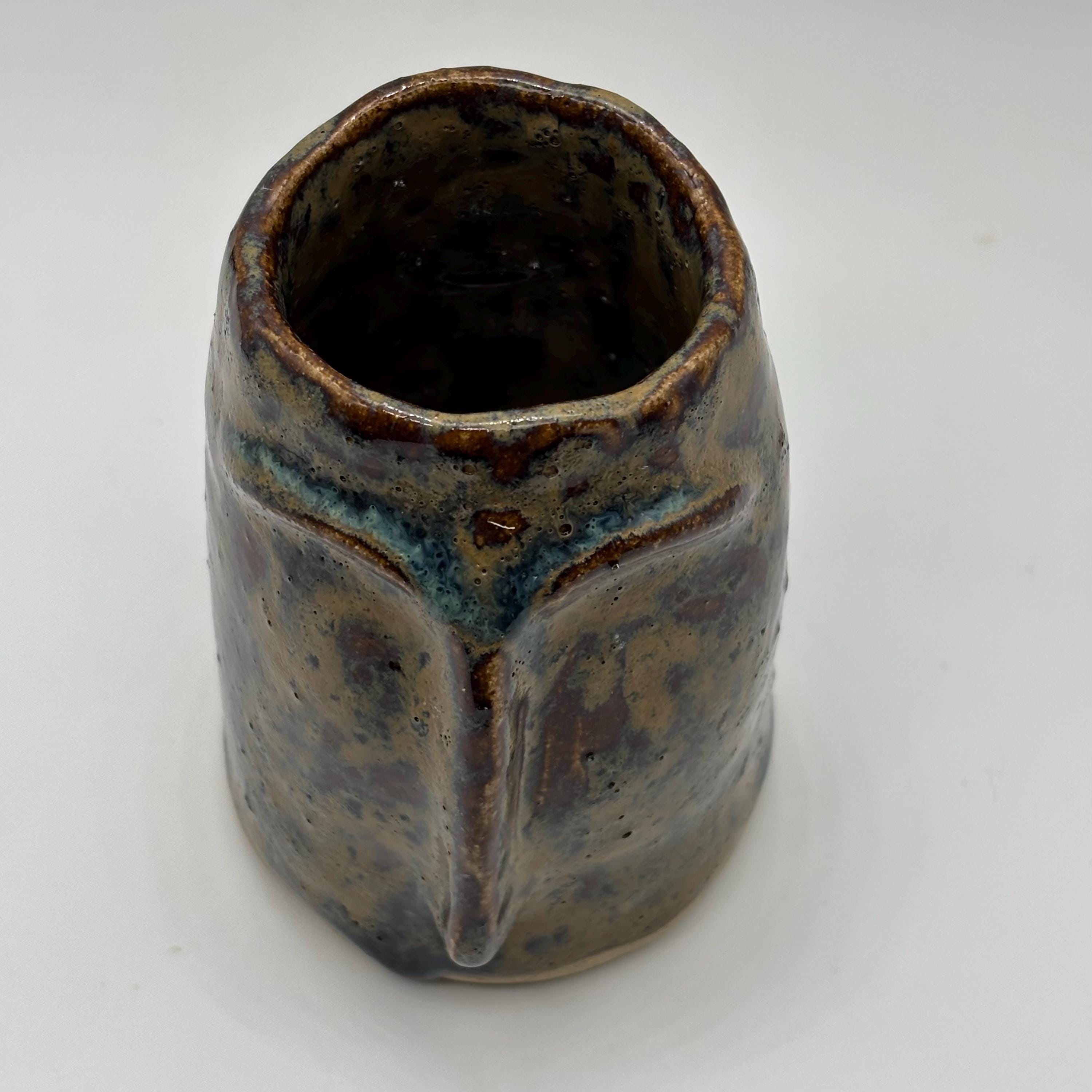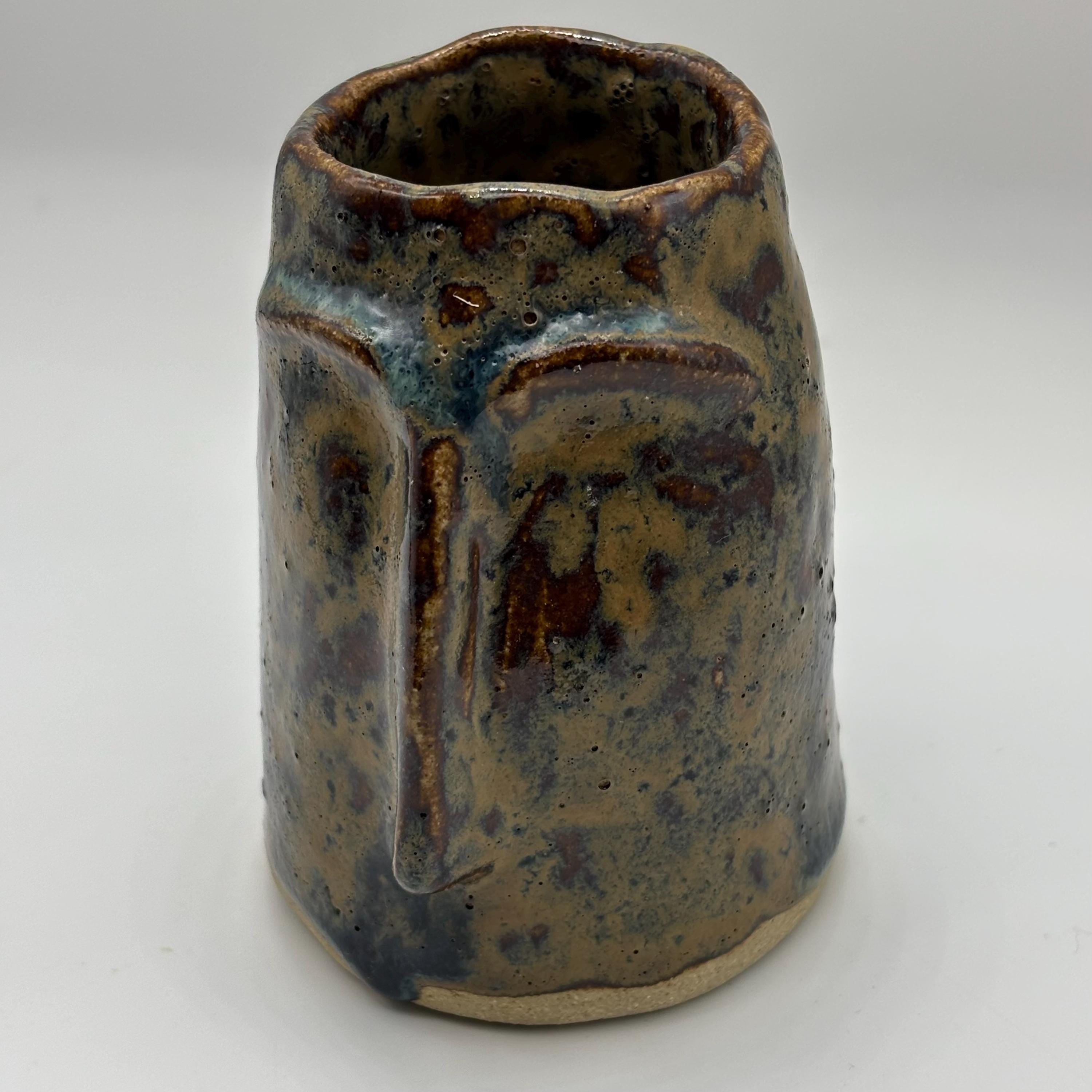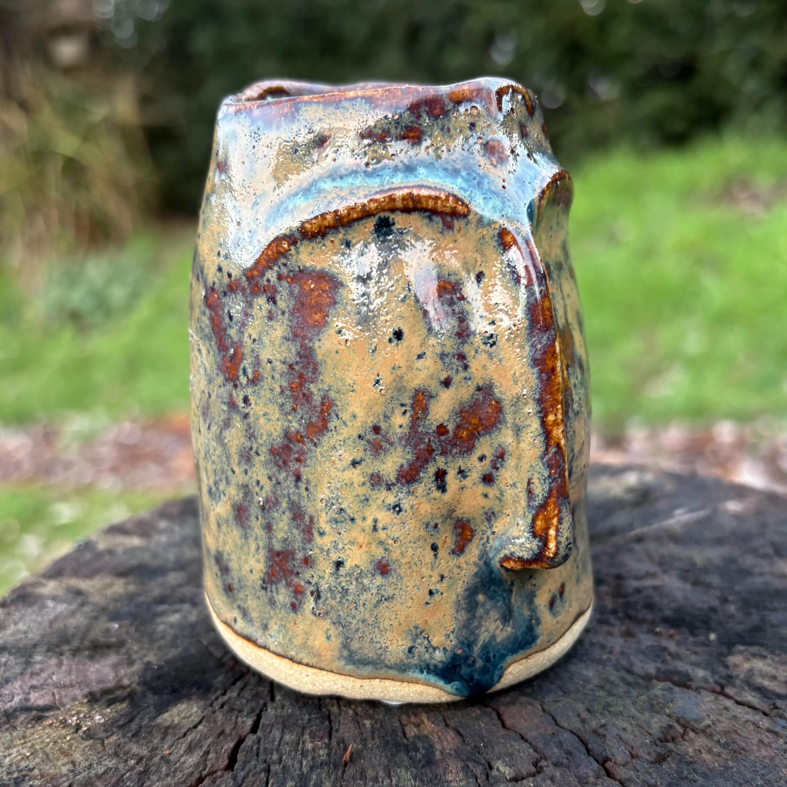This pot is made from speckled buff stoneware clay and glazed in a blue rutile glaze. It is a decorative and useful pot which will sit nicely in any room in your home, the perfect gift for an archaeology lover!