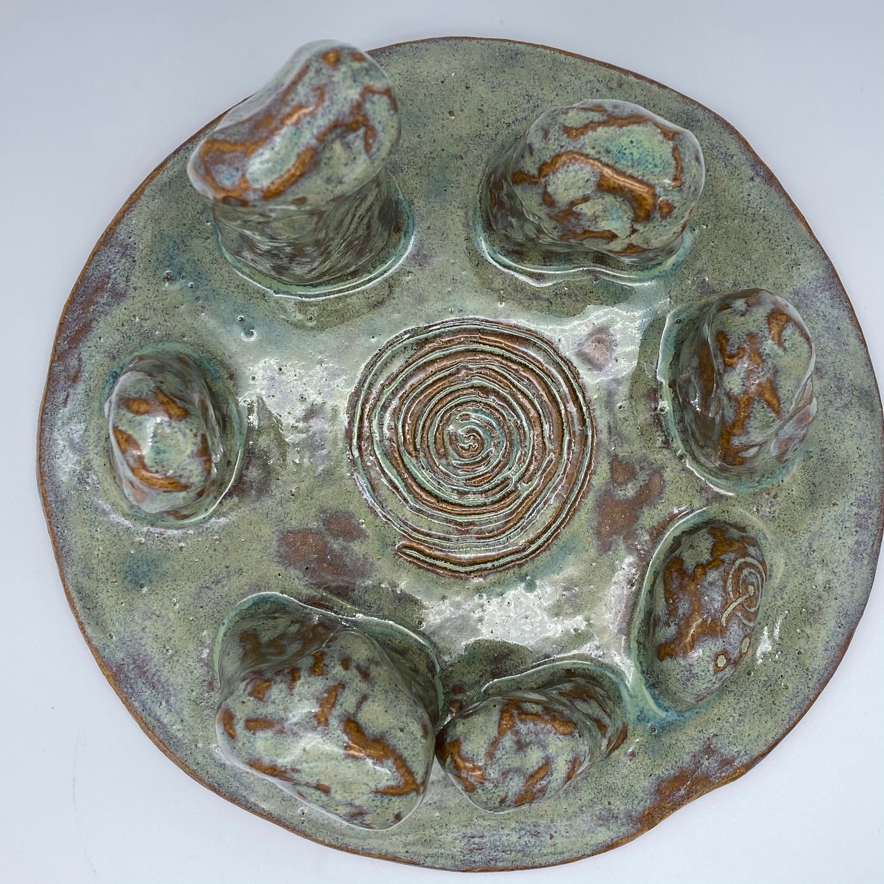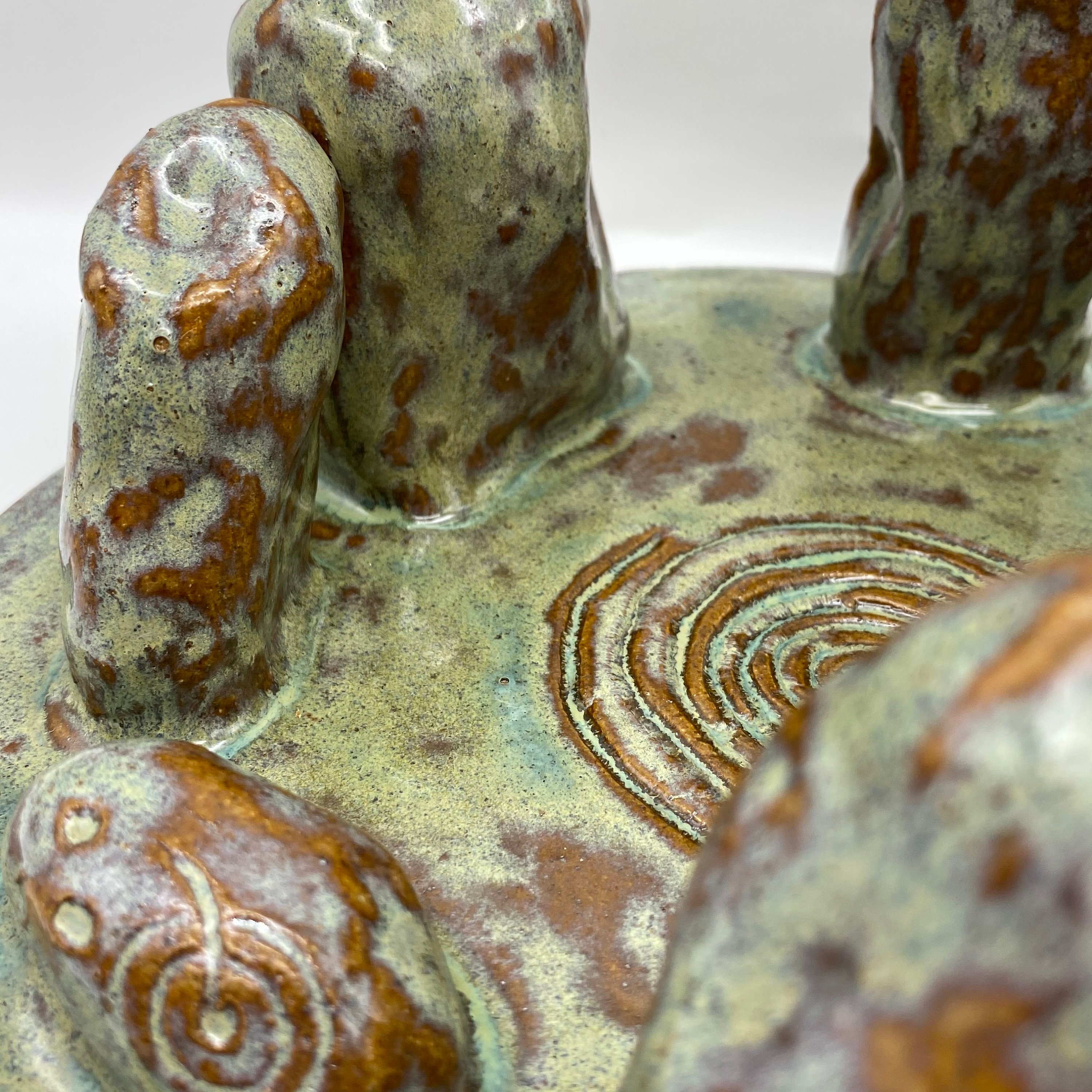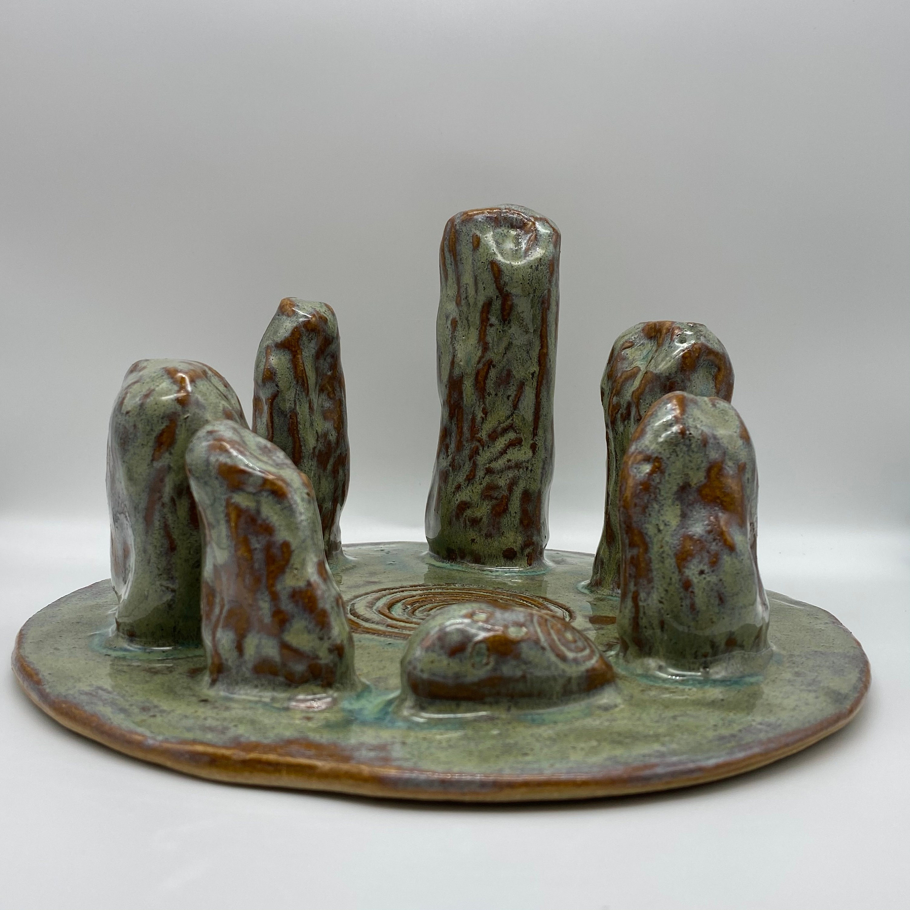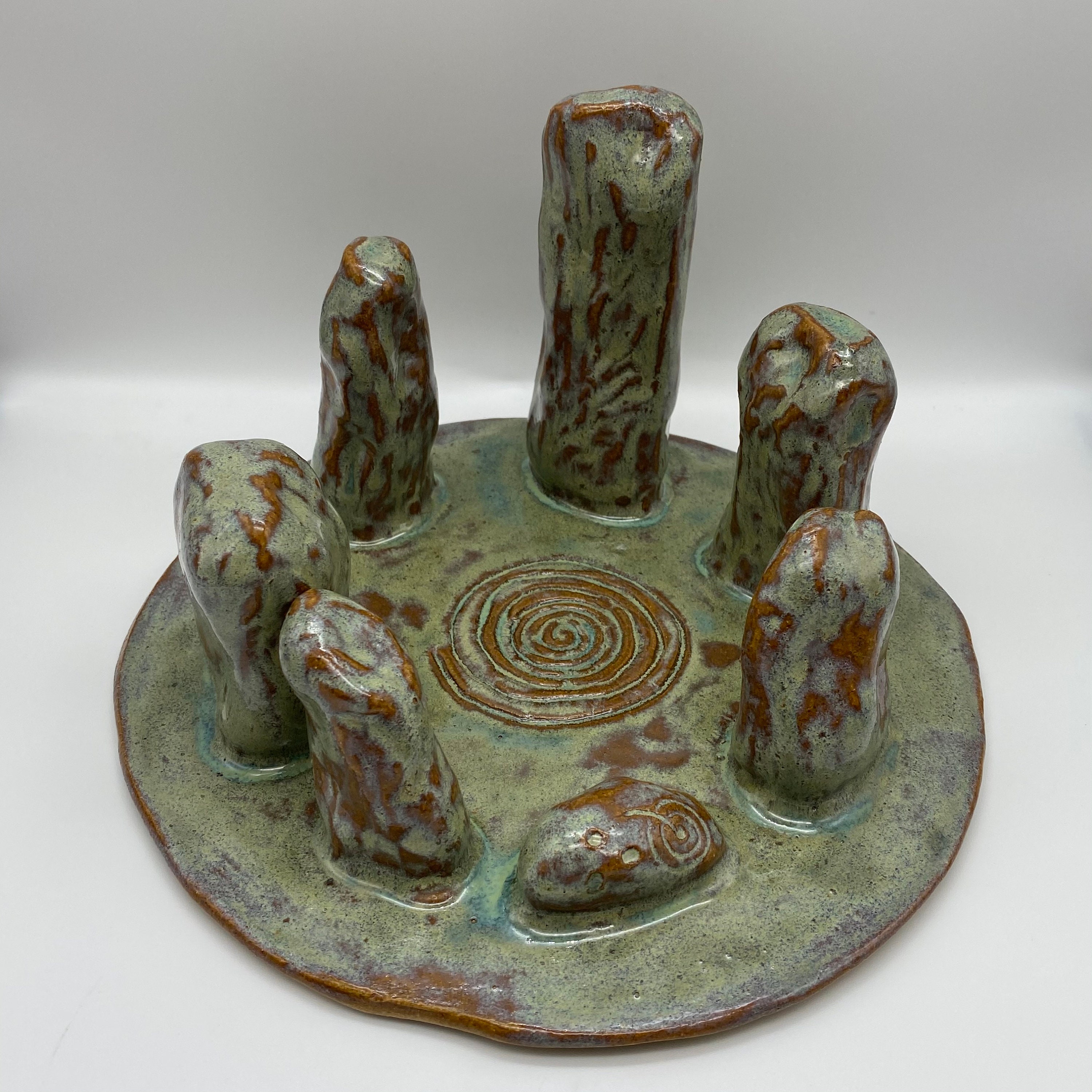 This stone circle is made from a stoneware clay and glazed in a runny green glaze which allows the lovely biscuity coloured clay to show through giving a very natural feel. It is the perfect gift for the history and archaeology lover.